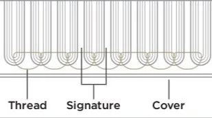 A signature is a sheet of paper printed with four or more pages of a Bible. It is folded to the approximate final page size, and to put the pages in numerical order. A Bible is made up of many signatures which are sewn together, creating the Bible’s spine. Sewn signatures create a secure text block.
