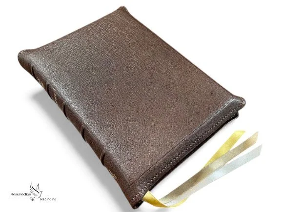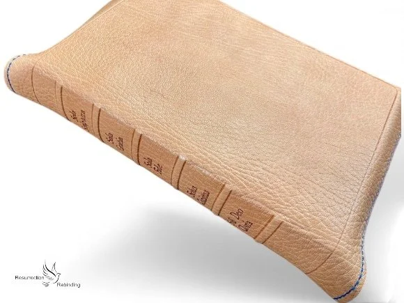 Levant goatskin has a heavier grain than any other goatskin currently available. The heavy grain characteristic comes from shrinking the skins during the tanning process, (not from some “grain manipulation”). Absolutely no grain manipulation either by machine or by hand is used to create this heavy grain. Levant Goatskin is currently my highest recommended available goatskin leather for rebinding. (yes, even when compared to Sokoto Traditional).